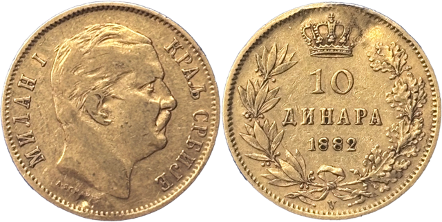 Un très bel exemplaire d’une monnaie à l’effigie de Milan Ier et frappée dans l’atelier de Vienne. Une production dans une très belle qualité de conservation.