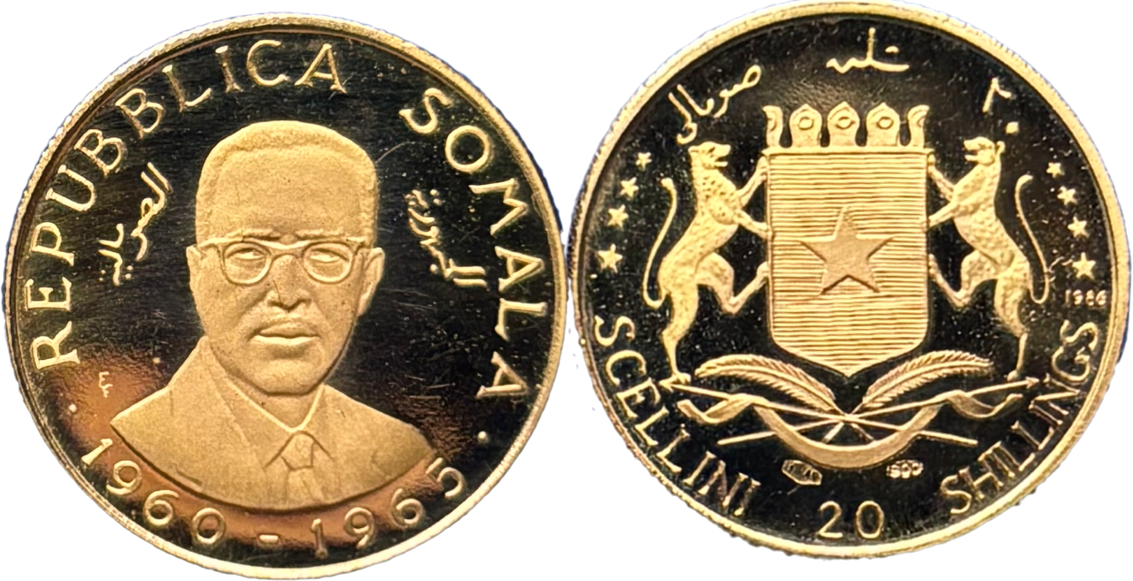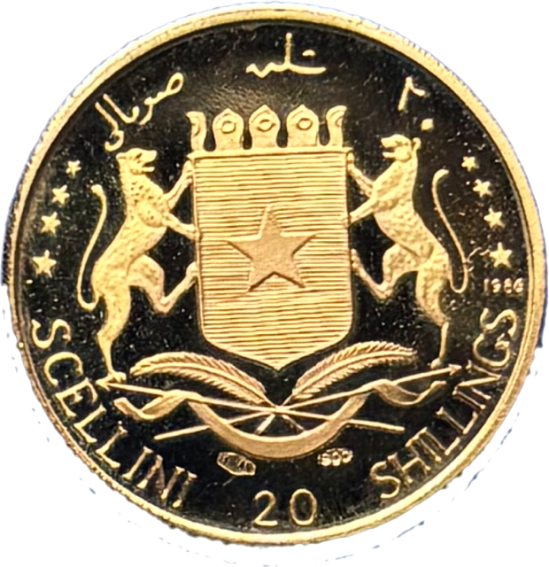 Un tirage peu commun dans un état de conservation splendide pour cette 20 Shilling de Somalie. Une monnaie à moins de 6 500 exemplaires. Très rare et avec son certificat et son coffret d’origine.