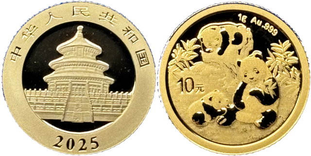 Des monnaies à l’effigie du panda émise par la Chine dans sa devise de 10 Yuan