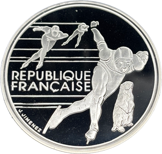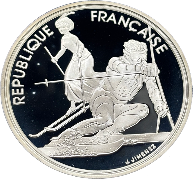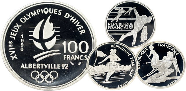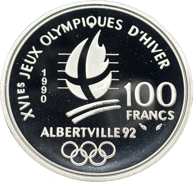 Monnaies de 100 francs à la série commémorative aux multiples gravures toutes de la thématique des 16es Jeux olympiques d’hiver d’Albertville. D’un poids de 22,2 grammes pièce à 90% d’argent en font une monnaie d’investissement française par excellence contenant quasiment 20 grammes d’argent pur. Toutes les monnaies sont FDC sous capsule à la frappe de qualité belle épreuve.