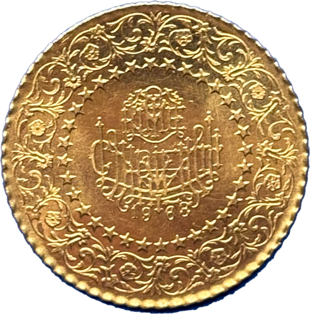 Une production de la 25 Kurush dans sa version « de luxe » a la frappe ornementale d’une monnaie exceptionnelle et rare. Souvent montée en bijoux, rarement en bon état. Rare au tirage inconnu !