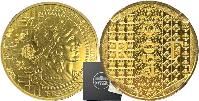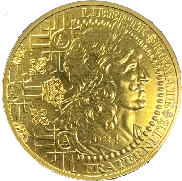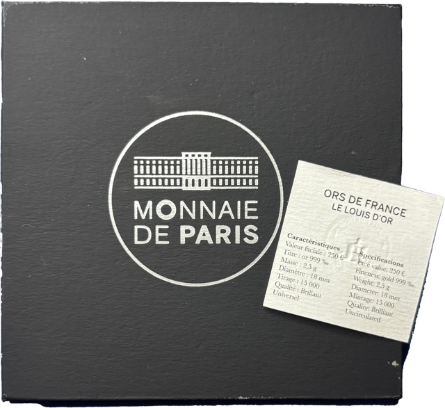 Idéal pour illustrer cette production française qui commémore La création du Louis d’or de par Louis XIII avec son portrait et l’iconographie du Louis d’or aux 8 L.