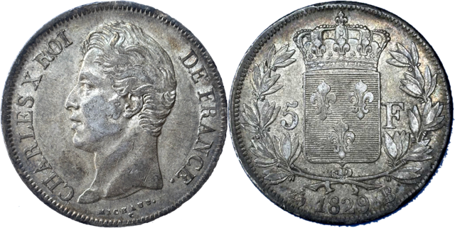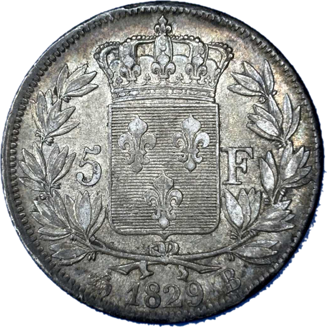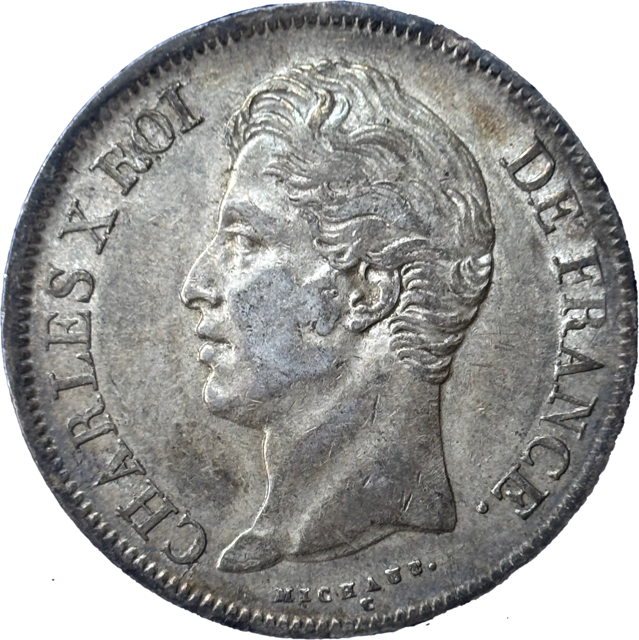 Un très très bel exemplaire d’une monnaie de 5 francs à l’effigie de Charles X dans un état de conservation peu commun pour ce type monétaire. Une superbe patine d’origine, une patine ancienne de collection aux reflets bleutés argentés avec un quasiment tout son de brillant de frappe.