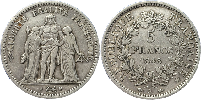 Monnaies de 5 francs Hercule ou écu de 5 francs à l’Hercule d’un poids de 25 grammes pièce à 90% d’argent. Quelques monnaies sont patinées et encore superbe, d’autres sont dans des états moyen ou correct.