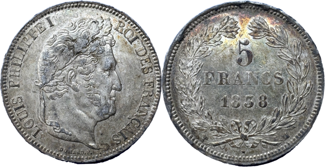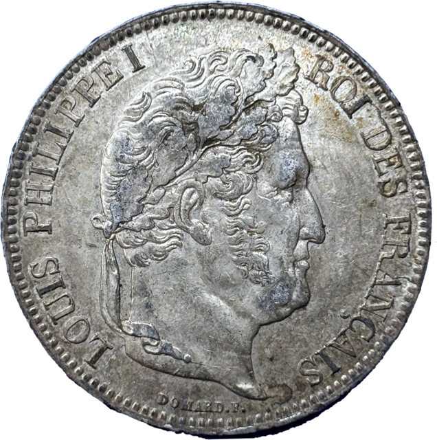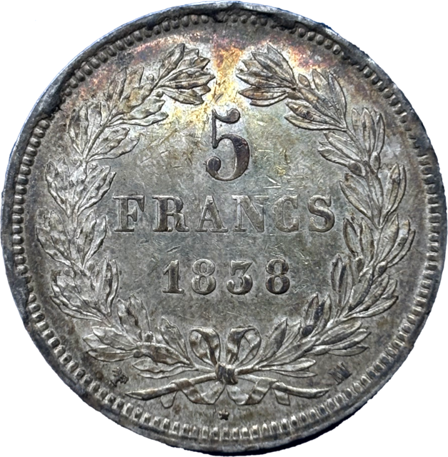 Un très très bel exemplaire d’une monnaie de 5 francs à l’effigie de Louis Philippe Ier dans un état de conservation peu commun pour ce type monétaire. Une superbe patine d’origine, patine de collection aux reflets bleutés argentés avec un quasiment tout son de brillant de frappe.