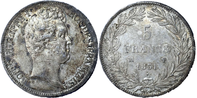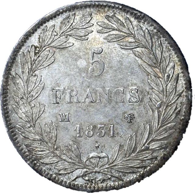 Une monnaie de 5 francs à l’effigie de Louis Philippe Ier dans un état de conservation peu commun pour ce type monétaire.