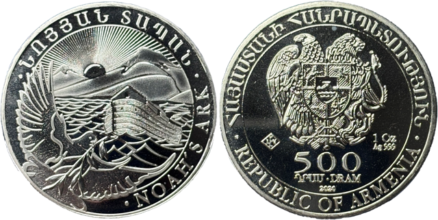 La classique once d’investissement dans sa version arménienne à la frappe allemande de l’arche de Noé libellé de 500 drams ayant donc cours légal.