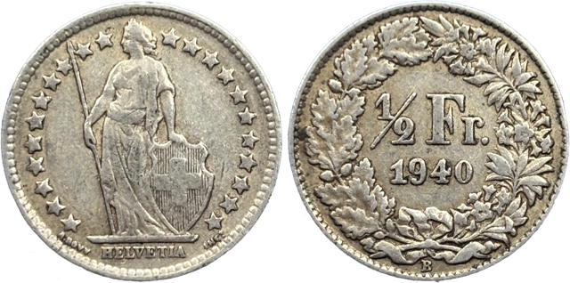 Nous vous proposons à la vente les demis francs Helvetia d’un poids de 2,5 grammes brut soit 2,0875 gramme d’argent pur. Une monnaie à la fois d’investissement et de collection.
